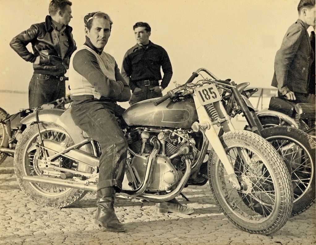 It's not such a stretch to see a somewhat related theme in that Texas was stage for a young man from Southern California hired to feature the mighty Vincent motorcycle in showdowns of speed, all to spread the proof that the new 998cc Vincent Twin from England was indeed the bike to beat; and with the visible vanquishing of all competitors on other makes, drive some sales.