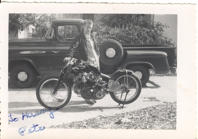 As for Pete, he finished high school and then served in The U.S. military during the Korean War. Following discharge, He got busy with motorcycles! We are not entirely sure which shop(s) employed him, but a likely one would have been Bruce Bristol’s BSA Shop, which was quite busy and sold many brands, including those of British manufacture. Pete was a mechanic, and apparently a very good one, implied by his results and supported by legend.