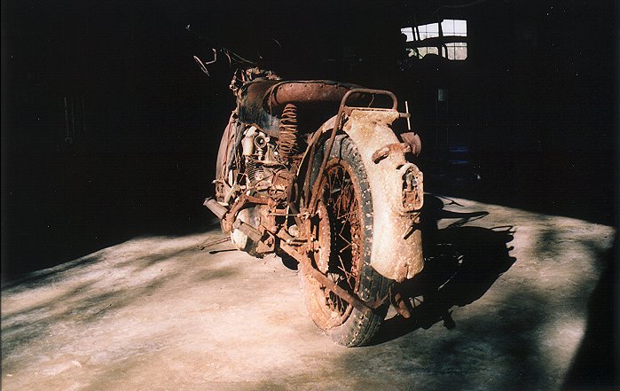 Alberto's "Barn Fresh" Black Shadow - Pre-RestorationThis 1949 Series B Black Shadow, engine number F10AB/1B/1870, was recently purchased on Ebay by Lone Star section member Alberto. Its price stirred some discussion, since as you can see it needs a bit of work. Still, it's an extremely rare machine - only 76 were made, according to the VOC Machine Registrar. The Series B Vincents were replaced by Series C models, with Girdraulic forks and other changes, not long after the Black Shadow was introduced.Works records indicate it was shipped to dealer John Esler in Grand Rapids, Michigan during April 1949. The engine is said to be mentioned in Dennis Minett's notebooks (Dennis made racing modifications to Vincents at the factory). See the next page for pictures of the bike after restoration. |